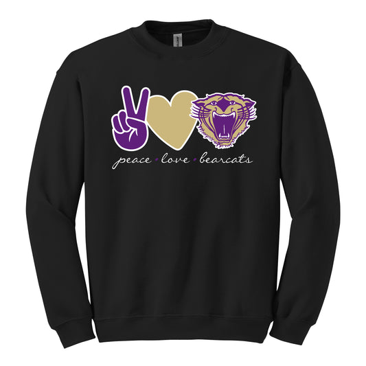 Peace. Love. Bearcats Crewneck Sweatshirt